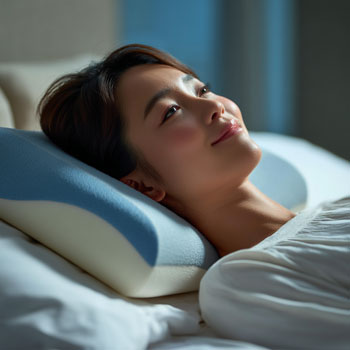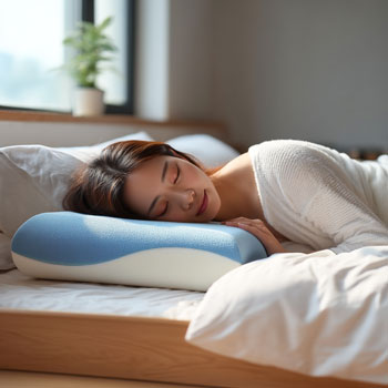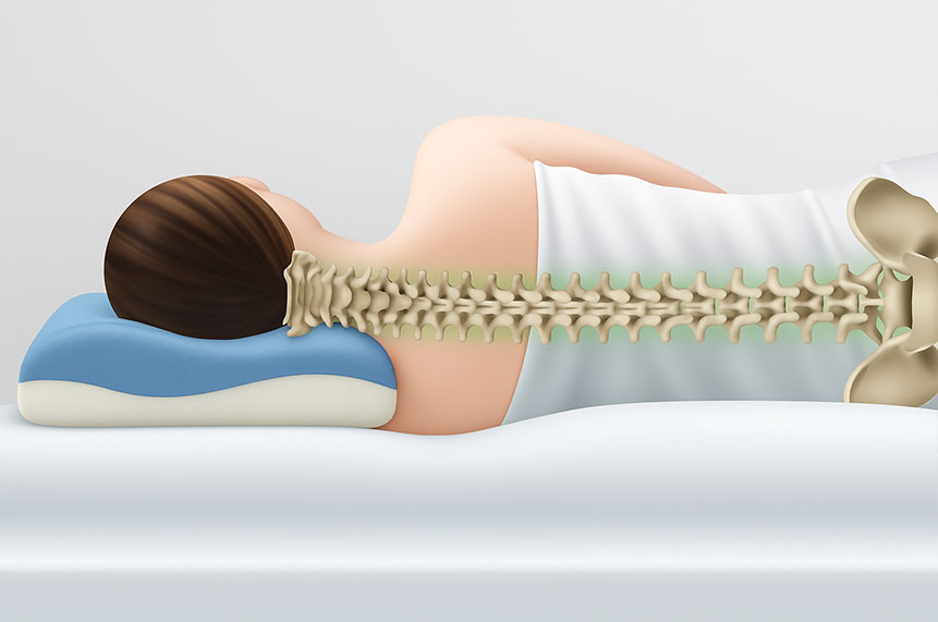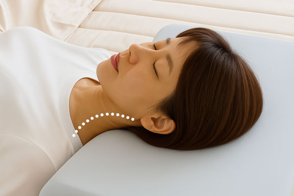 ▲ 높은 베개는 목 뼈를 꺾이게 만듭니다.